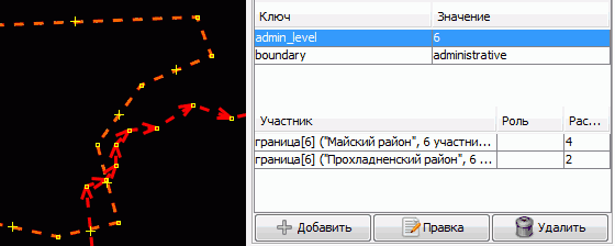 - если не хватает части нарисованной линии, загрузить отношения, содержащие эту линию, затем разбить её в нужных точках и добавить в отношение границы;
