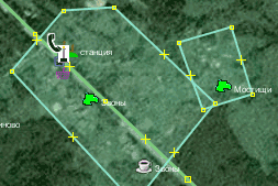 - Разбить контур на несколько, по одному для каждого населённого пункта. Скопировать названия и значения place с точек на соответствующие контуры.