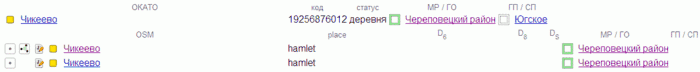 - Либо включить статусные части в названия, если они различаются (на точках и границах, если есть), либо расставить коды ОКАТО в okato:user.