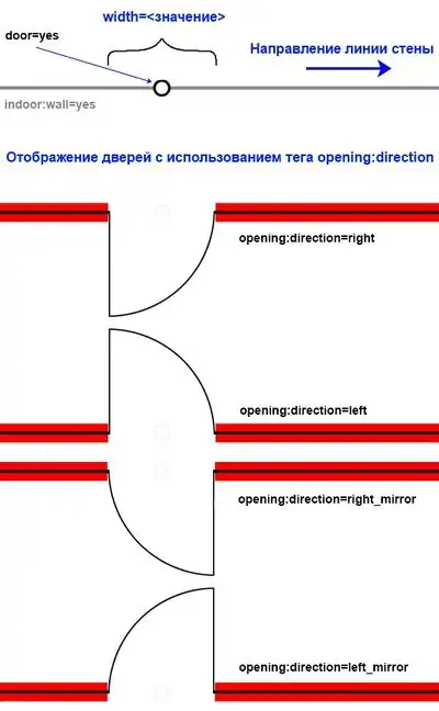 Для правильной маркировки направления открытия для рендеринга направление рисования линии стены следует учитывать: