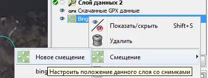 Нажмите правую кнопку на слое снимков («Bing Sat» в нашем случае) и выберите «Новое смещение».