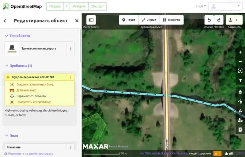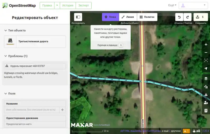 Часто бывает так, что дорога уже нарисована поверх реки, но мост не обозначен