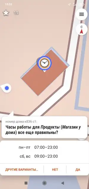 - Карта, показывающая opening_hours