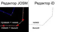 Также рассмотрите тег cutting=* для одной стороны выемки в ландшафте, если она проходит вдоль шоссе и не является искусственной стеной. Они более ровные (но немного менее вертикальные), если вы уточняете существующую линию, у которой уже есть другие характеристики, зависящие от его направления (например, уже есть oneway=yes или cycleway:left=lane), которую нужно было бы изменить, чтобы включить в соглашение barrier= «правая сторона ниже, левая — выше».