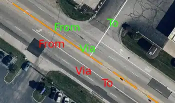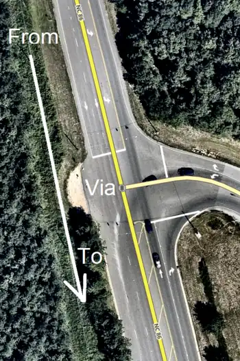 type=connectivityandconnectivity=*, withconnectivity:conditional=*being used to override the main connectivity tag at certain times or conditions. These cases are very rare, soconnectivity:conditional=*wont be needed often. See this example mapillary image of modular turn lane signage for proof that this is possible. - This relation type doesn't specify what "turn" travelling from the from way to the to way is - that should be added in the