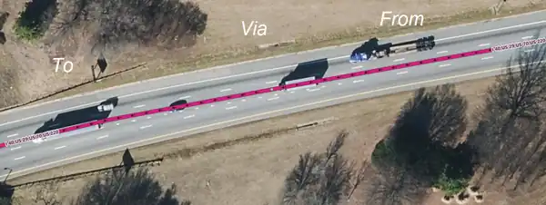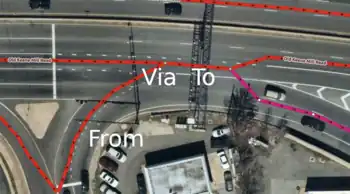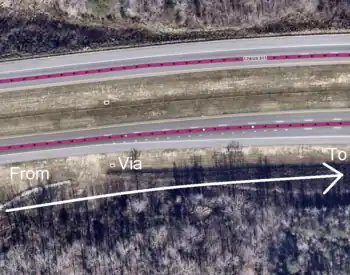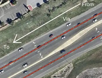 A from-via-to relation of type connectivity was used here to describe how the 3 lanes in The relation should have the tags This could be useful to navigation because the highway soon splits, and the right two lanes separate from the left two lanes. Knowing which lanes end up in which destinations in advance would be useful to navigation. | |