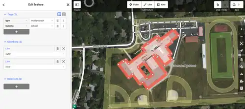 landuse=forest) always go on the relation. The outer way(s) must be left untagged[1], unless they describe something in their own right. For example, a forest could be delineated by four fences, in which case the four ways would be tagged with the barrier tag, but could still be used as "outer" members of the forest relation. - If the inner way represents something in itself (e.g., a forest with a hole where the hole is a lake), then the inner way must be tagged as such.