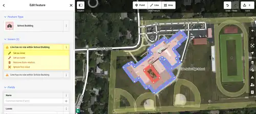 Here, the pointer is hovering over the first issue and the outer line of the building is blue, so it should be set to outer by clicking "Set to outer".