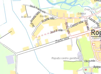 balticmaps.eu example of using coloured casing at high zoom. Note that filling is used at low zoom - see the filling section.