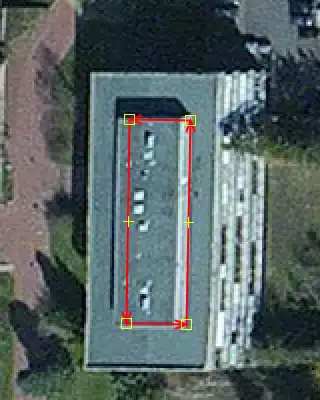 - A matching corner (on this picture the lower left corner of the drawn polygon), is placed correctly on the aerial photograph.