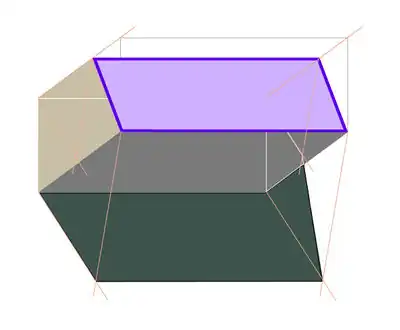 At the ends of the two parallel lines a straight line is drawn which connects the two endpoints of the lines. The line is perpendicular to both vectors previously drawn.