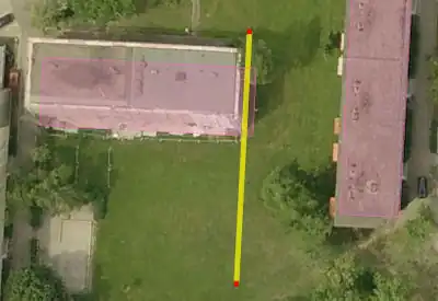 - A construction line parallel to the (right image in this example) the outer edge of the building is drawn and placed on the outside edge of building on the aerial photograph: