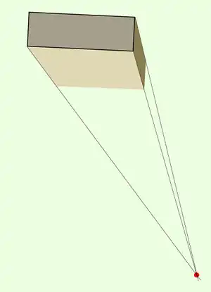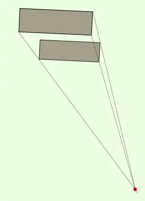 Only the tracing of corresponding vertical outside edges of the perspective view (reduction to the ground plan) would make this visible: