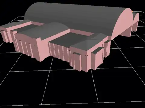 * A multipolygon of height 12m with the building outline as 'outer' and the center area as 'inner' * A part for the lower center area of height 7m