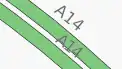 - Manjša cesta z delilno črto (prekinjeno ali neprekinjeno), ali zelo pomembna cestica = tertiary