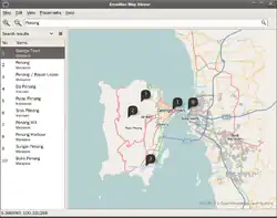 a multi-platform desktop application for viewing maps, calculating routes, finding places, creating map images, and adding your own map data | |