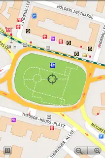 shows prepared prepared from OSM map converted [25] to own ".mapth" format. Has predictive search for streets.