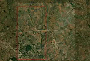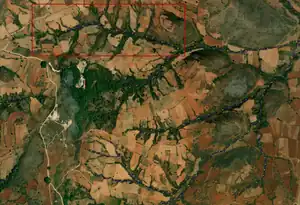 - These waterways flow through agricultural fields and are marked by vegetation along the banks.