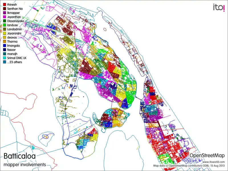 Welcome to OpenStreetMap Batticaloa! Let's join forces and create a complete, accurate and useful map of Batticaloa District.