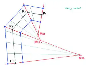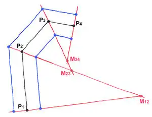 rendering machine calculates section points M12-M23-M34 by use of angle bisectors.