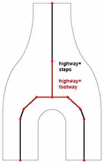 Steps (black midline) and footway (red midline)