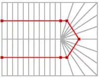 In diesem Fall werden die Endpunkte beider Linien miteinander verbunden. Die einzelnen Punkte der Linie die mehr Punkte besitzt, werden über das Kriterium der kürzesten Entfernung mit den Punkten der zweiten Linie verbunden.