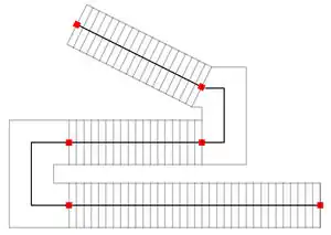 A staircase with many wrinkles and without stairway landings is rendered as in the following example: