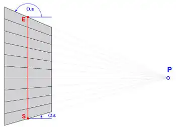 Anfangsneigung Treppe (alpha s) :Treppe im Punkt S, Endneigung Treppe (alpha e) Treppe im Punkt E