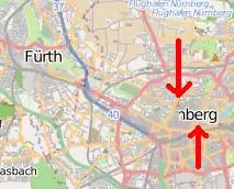 Bei Zoomlevel 11 kann es passieren, dass Großstadtnamen verschwinden. Das erwartet man natürlich auch, wenn sich Namen von Städten derselben Größenkategorie überlappen. Gleiches passiert aber auch, wenn sich in der Nähe des Stadtnamens ein Berggipfel befindet. Beispiel: Burgberg in Nürnberg. Im nebenstehenden Bild wurden linker und rechter Teil zu unterschiedlichen Zeitpunkten gerendert. Deswegen ist recht schön zu sehen, dass der Burgberg (links) den Stadtnamen (rechts) einfach verdrängt. Zum Zeitpunkt des Renderns des rechten Bildteils war der Gipfel nämlich "entschärft" worden.