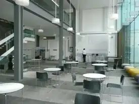 At lunchtime, the atrium space will be used to serve food. The far side will be for posters/gallery displays.