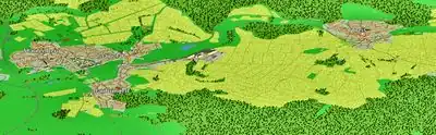 - Natürliche Bereiche wie Flüsse, Seen und Wälder sind vorhanden. - Schlüssel: n