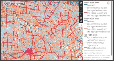In December 2011, ITO World added a regularly updated TIGER Edited Map layer to ITO Map, and this superseded the MapQuest one which wasn't being updated. This version also gave a break down by minor and major roads and indicated whether the map has been edited without the reviewed tag being removed. [2]