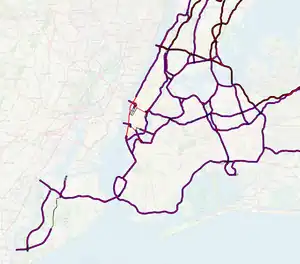 Others: Dr Martin Luther King Expressway, Flatbush Avenue Extension, John F Kennedy Expressway, Lincoln Tunnel, Manhattan Bridge, Sheridan Boulevard, Whitestone Expressway, Williamsburg Bridge