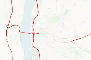 - There are several single-carriageway roads that are arterial class 1 (yellow). These include the Bayonne, Kingston-Rhinecliff, Thousand Islands and Peace Bridges (which do not have grade separation on the bridges); several motorway links in The Bronx that also serve as local roads, and (a data entry error?) the Bennington bypass road.