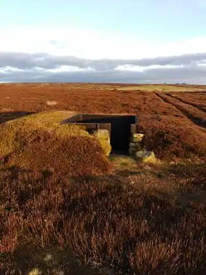 • hunting_stand=grouse_butt - a traditional type used for driven grouse shooting in the British Isles. Usually a semi-circular or horseshoe shaped wall made of stone or turves. It encloses the shooter and possibly a loader. Usually arranged in lines. Some less traditional designs may also be seen. NOTE: these can be mapped as ways.