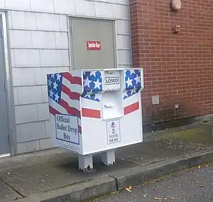 A polling station is a place where people vote, i.e. where ballots are cast. It can be a room in a building where voter registrations are checked, ballots are provided and voting machines & a ballot box are available, or merely a locked box where mail-in ballots can be deposited, or something in between.