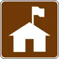 For showing the location of an official park visitor facility building (one directly associated with a park or natural area). Such buildings typically offer a variety of services such as police services, visitor information, permits, exhibits, lost & found, etc. A ranger station is generally the first and primary spot for visitors.