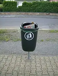 It can also be called a rubbish bin, litter bin, trash can, or garbage can.