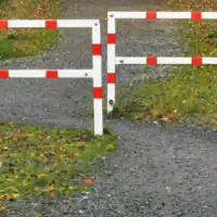 A chicane barrier across the path formed by two barriers/bars one behind the other. The dimensions of the barrier can be specified more precisely with spacing=*, opening=* and overlap=*.