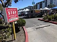 Use the tag barrier= for a strip of spikes across a road that allows vehicle access in one direction only. They can be removable or retractable, e.g. after payment in a garage.