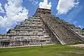 Part of a building which is shaped like steps, often at a stadium or temple.