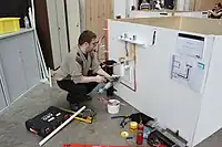 Workplace or office of a skilled tradesperson who specializes in installing and maintaining systems used for (drinking) water supply, sewage and drainage.