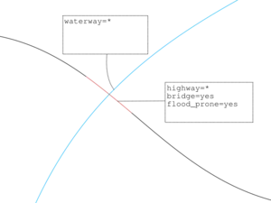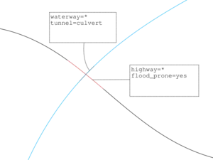 hazard=washout– A section of road which presents a risk to motorists due to washouts.ford=*– Unlike flood prone areas, fords may be safe to cross if there is water across the roadway.- Proposal:floodplain