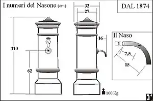 This type of drinking fountain dates back to an effort by then mayor Luigi Pianciani, who started in 1874 the creation of a dense network of water fountains to provide free drinking water everywhere on the streets and squares of the city. Currently there are said to be 2500-2800 nasoni still deployed in the city.