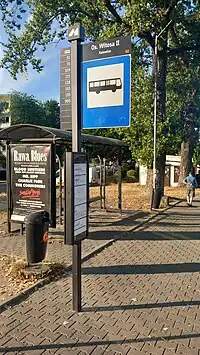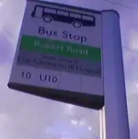 A bus stop is a place where passengers can board or alight from a bus. Its position may be marked by a shelter, pole, bus lay-by, or road markings.