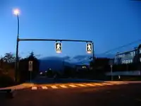| Crossing with traffic signals | Crossing lit |