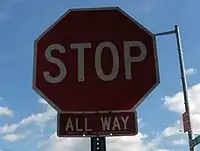 - all approaches must stop (all-way stop; at cross-streets, called 4-way stops).