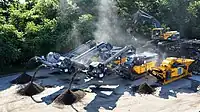 This tag stands for is a stationary industrial recycling company that crushes, sorts the material and recycles it. It can be rubble, plastic, paper, organic waste, etc.