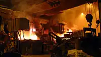 Steel mill or steelworks is an industrial plant for the manufacture of steel. It may be an integrated steel works carrying out all steps of steelmaking from smelting iron ore to rolled product, but may also be a plant where steel semi-finished casting products are made from molten pig iron or from scrap.