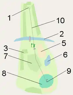10 hole way A hole is represented by a way along the standard playing path from the tee to the green.